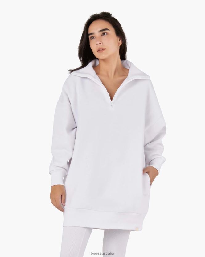 TKEES Core Fleece Oversized Half Zip White – TKEES Clothing JRR28B174